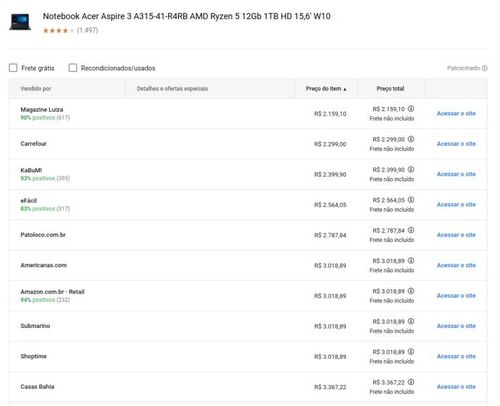 - Placa de vídeo dedicada Radeon 535 com 2GB de memória dedicada