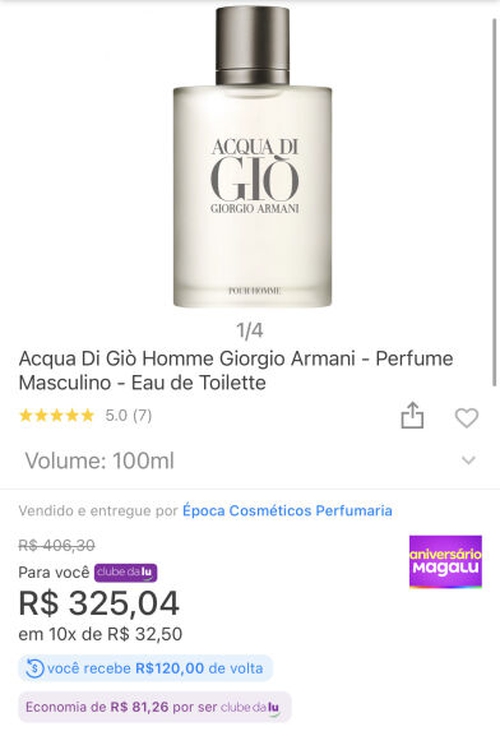 Olha o preço do Armani Code. Agora nem sei qual pegar. Apesar que Armani eu tenho um pouco. (cheeky)