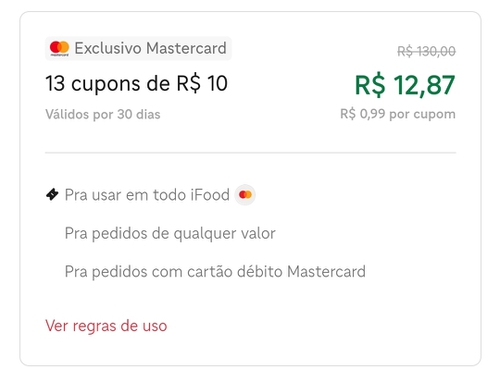 Ifood tá uma b0$tá só cupom de 10 em 30 horrível não tem mais indique e ganhe nem cupom de primeira compra