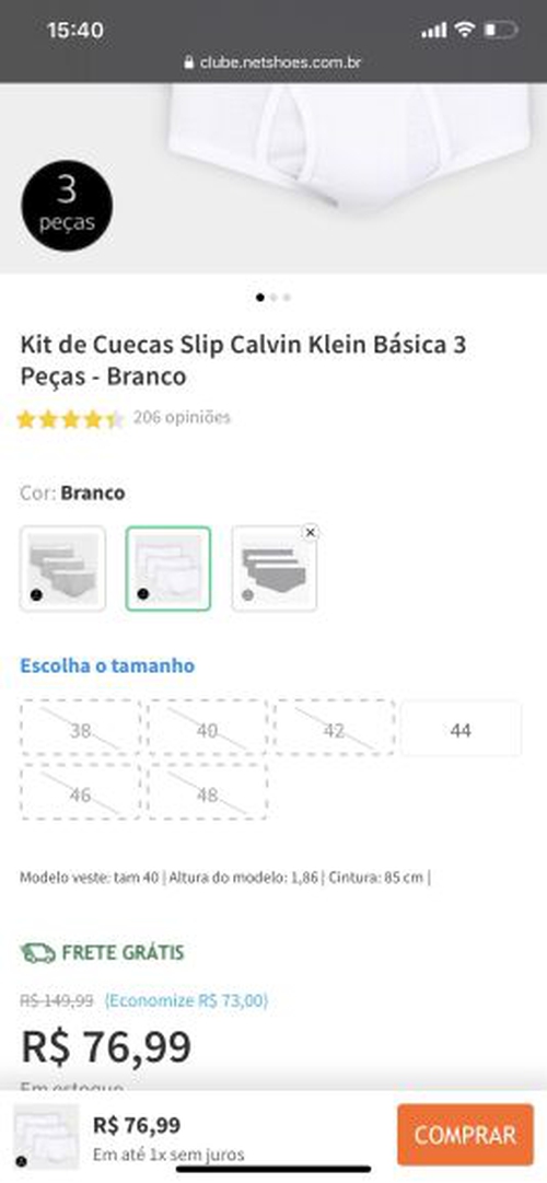 [CLUBE NETSHOES /VAI DE VISA] Kit de Cuecas Slip Calvin Klein Básica 3 Peças - Branco