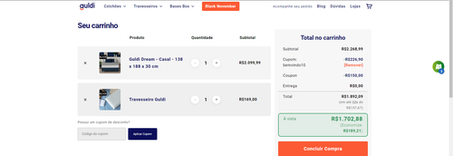 Coloquem o travesseiro da guldi,marcando a opcao na hora da compra,junto com cupom BEMVINDO10 q ele sai R$1702.