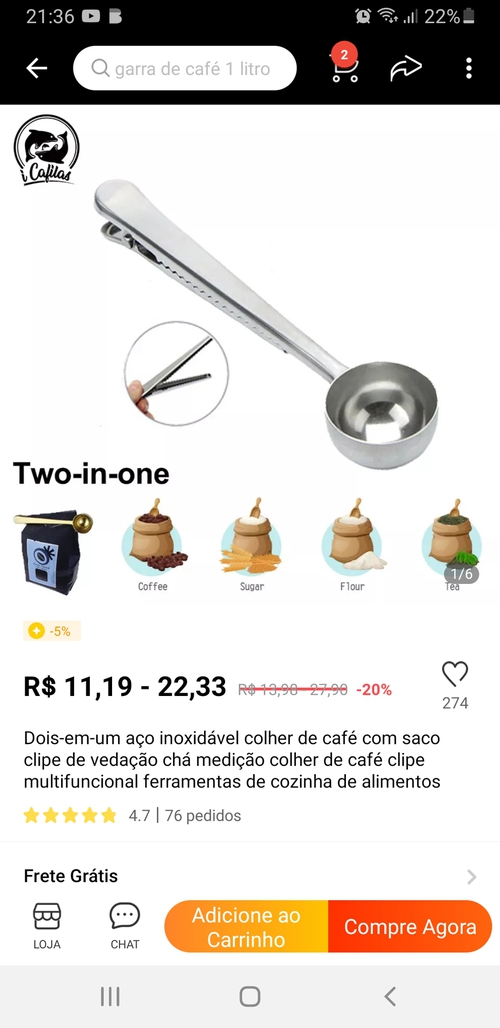 Tem dois itens no link, mas o que está a 27 centavos é a opção de apenas 1 colher,blz?