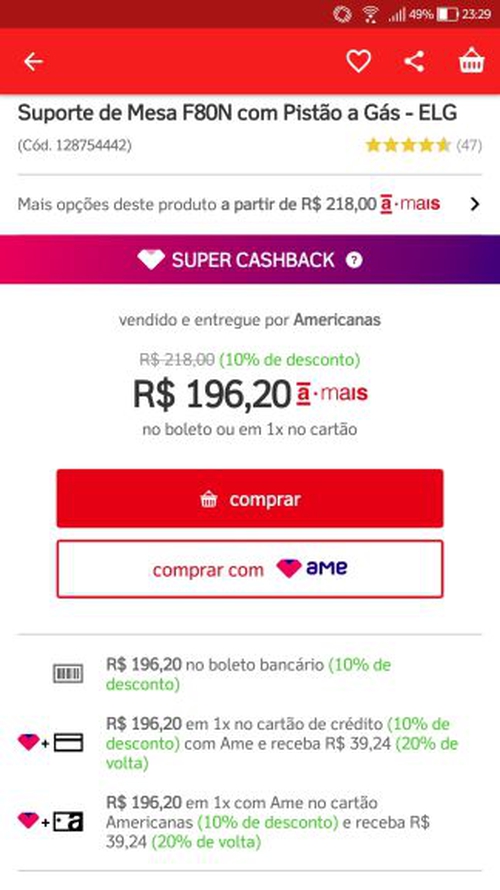 Eu tentei comprar duas vezes, você aplica o cupom e na hora que abre pra pagar no app Ame ele tira o cupom e volta pro valor normal. E dentro do ame o cupom não funciona.
