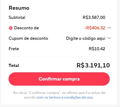 Precinhoooooo em até 12 parcelinhas de R$265,92 e ainda ganha um cupom de R$95,73 para compras futuras sem valor minimo