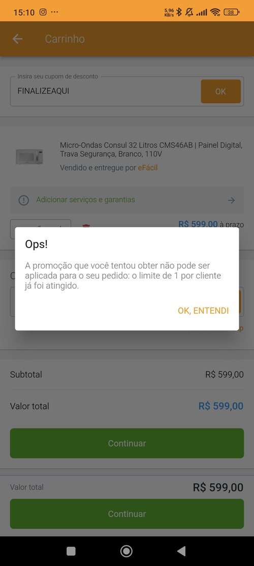 alguém sabe informar se esses cashback só funciona em lojas especificas ou é o micro-ondas em específico? to com cupom no carrefou iria usar + o cashback sairia bem barato pra mim.