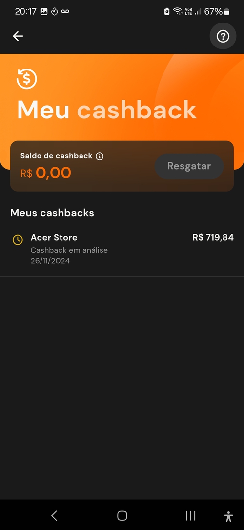 levei o preju de R$700, tava precisando do computador e não dá pra devolver. Cashback por aqui é lenda