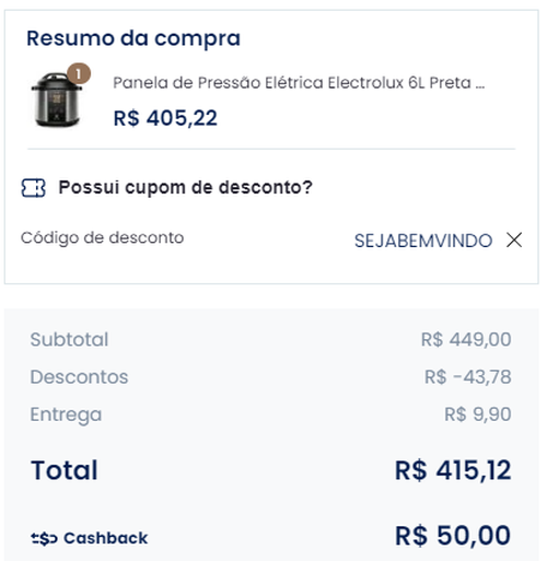 CASHBACK DE R$50 PARA USAR NO SITE DA ELECTROLUX