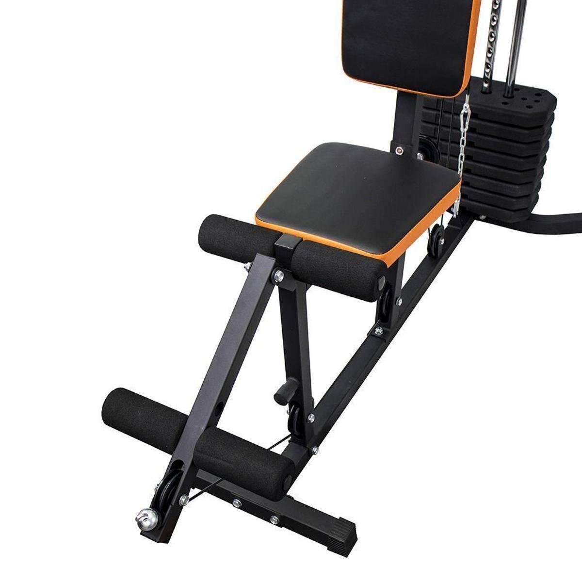 melhor comprar um rack modesto, um banco, barra de 1,80/2,00m, barra de 1,20 W e 120kg ou mais de anilhas distribuídas. Pulley costas troca por barra fixa de parede. Dá o preço dessa estação aí e é mais fácil de vender depois se não quiser mais.