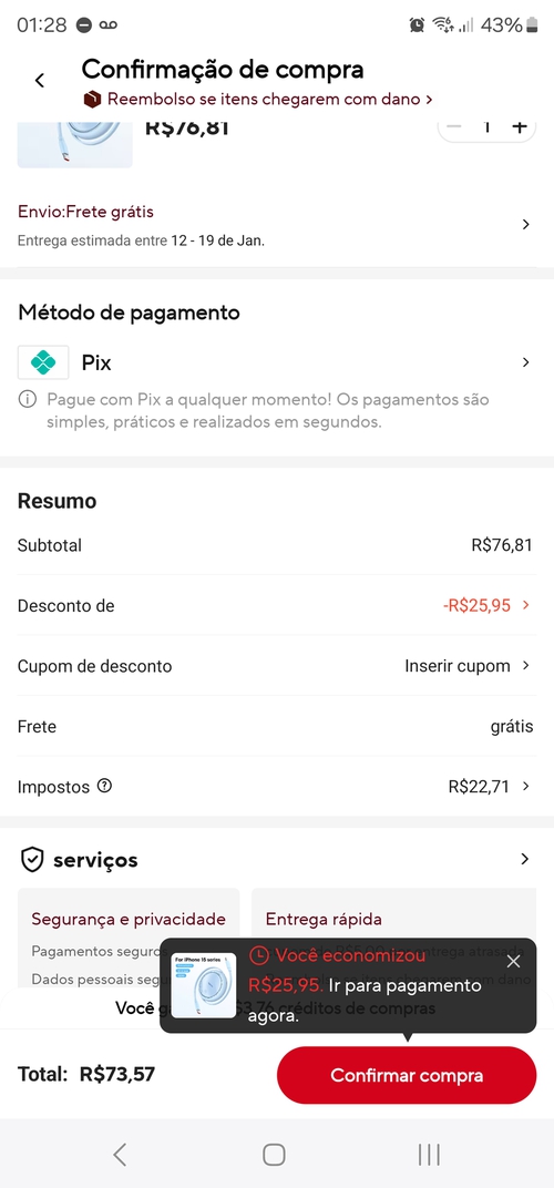 Não chega neste valor, aqui fica R$73, cupom MINI124 não aplica.