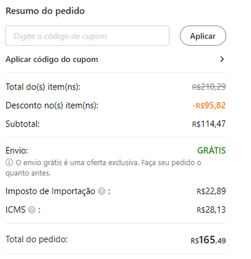 Mesma bag que tem no AliExpress por 50 + impostos no Choice