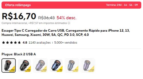 Comprei por 9,90 no choic já tem um tempo, muito bom e carrega rápido, recomendo!
