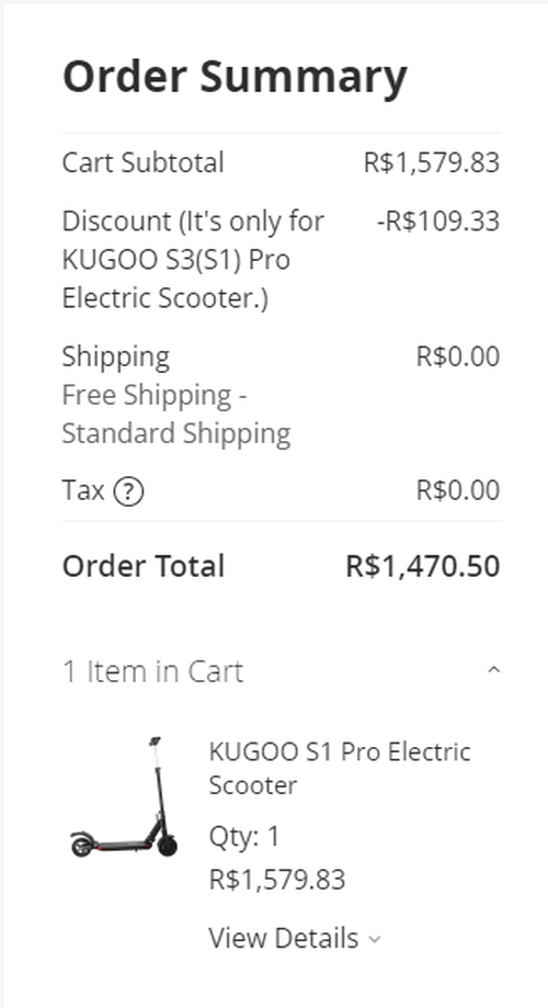 [Com Taxa] Patinete Elétrico KUGOO S1 Pro 7,5Ah, 350 W, 30km/h, 120kg
