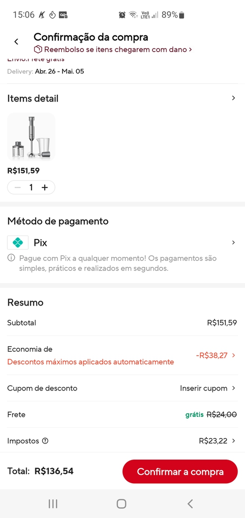 Na aba de moedas tem o anúncio dele por 151,59. Aplicando o cupom e com o desconto das moedas consegui chegar no valor de 136,54 pelo app