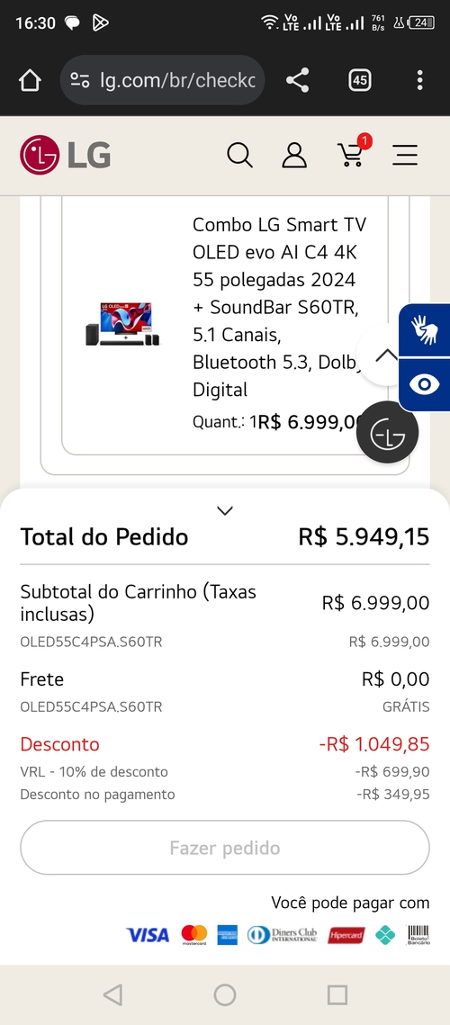 Saindo por R$ 5034: Smart TV LG OLED evo...lando