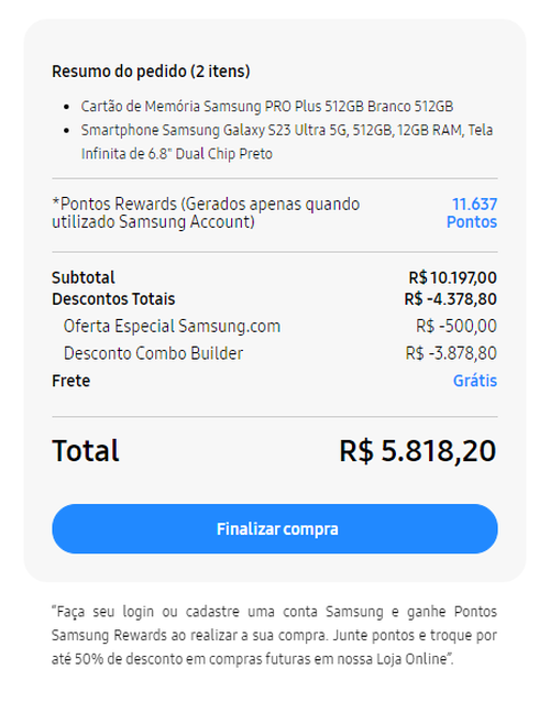 Se selecionar 2 S23 ultra e um cartão de memória sai por 4300.