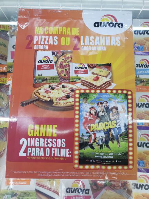 Na compra de 2 pizzas Aurora ou 2 Lasanha Aurora ganha 1 par de ingresso para o filme Os Parças 2.