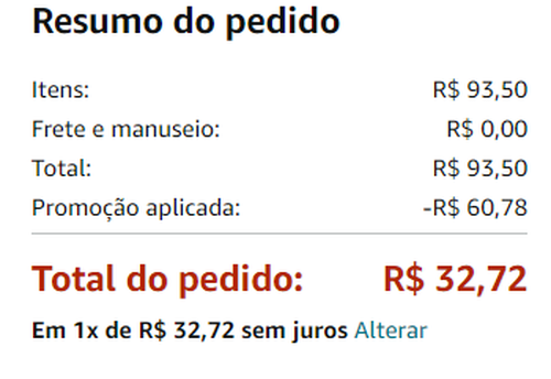 Aqui tá indo não... dá 32.72 de desconto e o total sai a 60,78