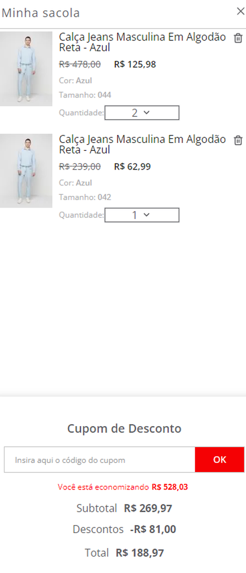 é necessário colocar 3 unidades no carrinho para conseguir o desconto, de acordo com o print abaixo: