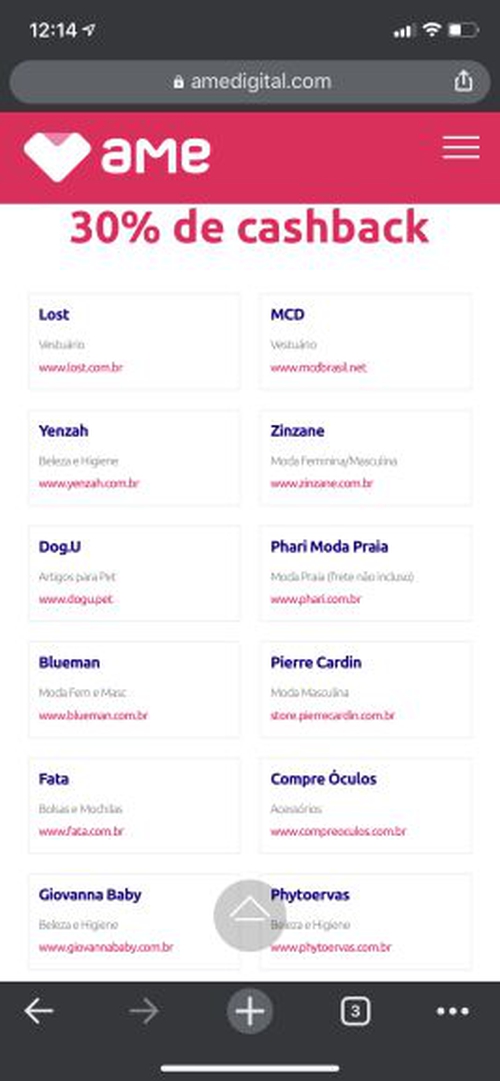 Compre com AME em lojas on-line e ganhe até 40% cashback e frete grátis