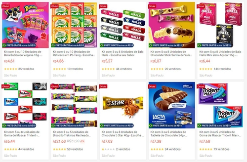 Peguei bastante trident(5 por 6) e halls(8 por 6). Muito barato!