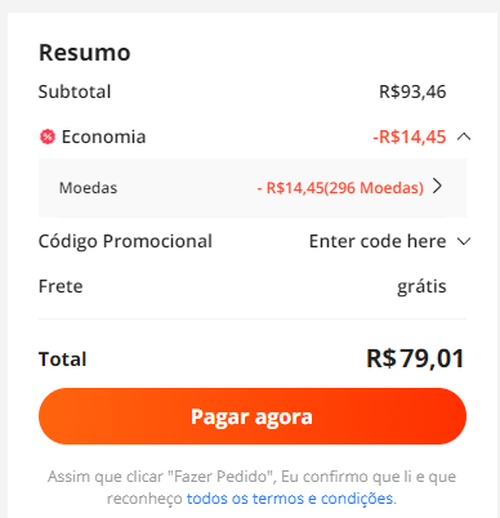 Não consegui chegar nesse desconto, não consegui aplicar todas moedas