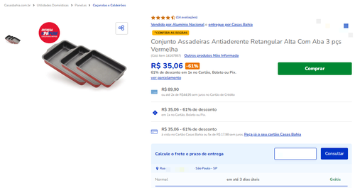 Conjunto Assadeiras Antiaderente Retangular Alta Com Aba 3 pçs Vermelha
