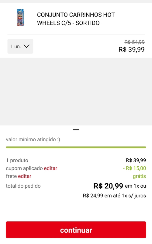 Esse cupom me salvou bastante, eu ia comprar para meu filho um Hotwheels e apareceu essa maravilha, aqui já retirei hoje e com conta antiga minha.