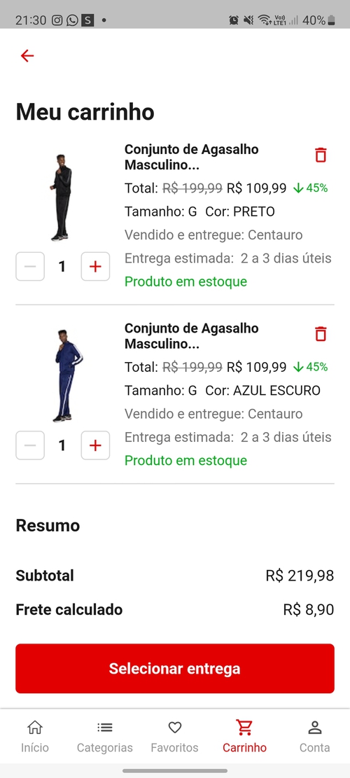 Consegui o conjunto preto por R$103. Obrigada por postar. Presente do dia dos pais garantido.