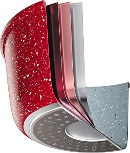 MaterialAlumínio, Vidro temperado, Aço inoxidávelCorVermelhoMarcaEuroNúmero de peças1Componentes incluídos1 Frigideira 24 cm - 2 L 1 Caçarola 20 cm - 3 L 1 Caçarola 24 cm - 4,8 L 1 Panela 16 cm - 1,6 LConjunto de panelas 4 peças de alumínio com antiaderente e 5mm de espessura na borda, tampa de vidro temperado com saída de vapor e cabo com pintura siliconada soft Touch que não esquenta e tem toque macio é um item indispensável em sua cozinhaLivres de metais pesados e elementos químicos cádmio, chumbo, mercúrio, ptfe e pfoa prejudiciais à saúde.Certificação do INMETRO Nível de eficiência de aderência " A "Revestimento antiaderente, os alimentos não grudam, possui 5 camadas: 1º antiaderente, 2º camada antidesgaste, 3º alumínio, distribui melhor o calor, 4º pintura resistente e 5º base inox, pode ser usada em fogões a gás, halogênio, cerâmico ou elétricoMedidas individuais: Frigideira 24 cm - 5,5 cm x 24,5 cm x 41,5 cm Caçarola com tampa 20 cm - 21,5 cm x 33,5 cm x 16,5 cm Caçarola com tampa 24 cm - 25,5 cm x 38 cm x 17 cm Panela com tampa 16 cm - 17,5 cm x 34 cm x 13,5 cm Frigideira 24 cm - 2 L Caçarola 20 cm - 3 L Caçarola 24 cm - 4,8 L Panela 16 cm - 1,6 LPodem ser lavadas na pia ou até mesmo na máquina de lavar louças.