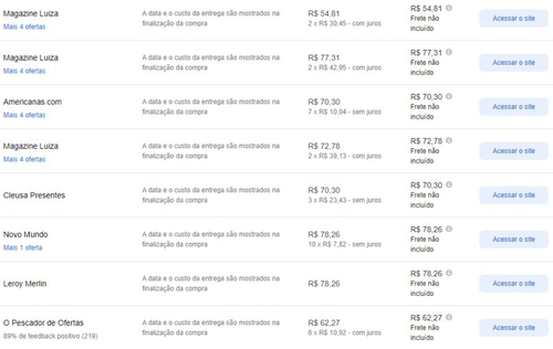 - Menor preço segundo o Google Shopping