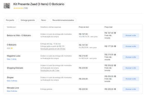 - Preço mais baixo conforme Google Shopping
