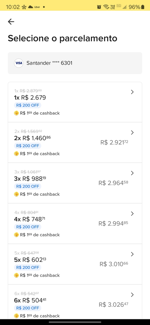 No cartão Santander em 1x, dá mais 200