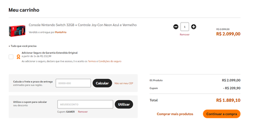 Galera, lembrem de adicionar o cupom GAMER na etapa de pagamento!