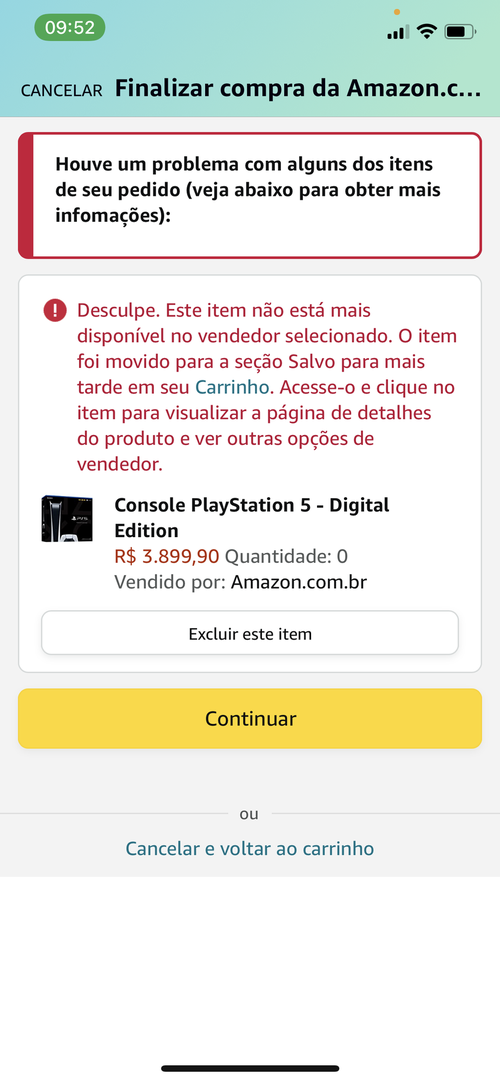 Ontem foi a mesma coisa. Tentei comprar, atualizar a página e sempre aparecia como indisponivel
