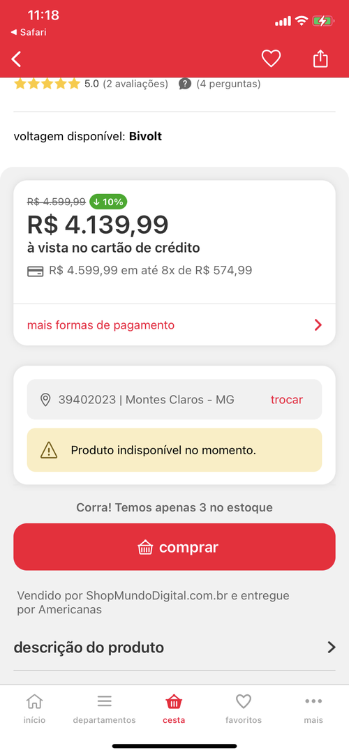 Estava muito barato, aqui sem estoque já kkkkkkk