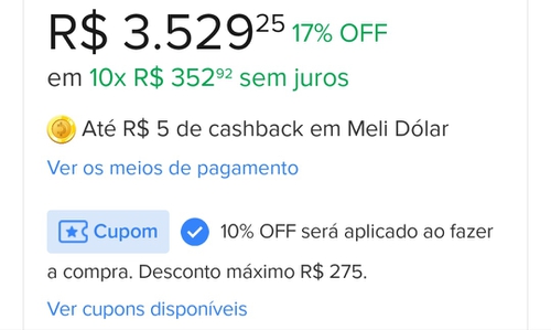 quem não ta conseguindo esse valor ai como eu tem um cupom de 50 reais que ta funcionando nessa compra DESCONTA50 ta funcionando