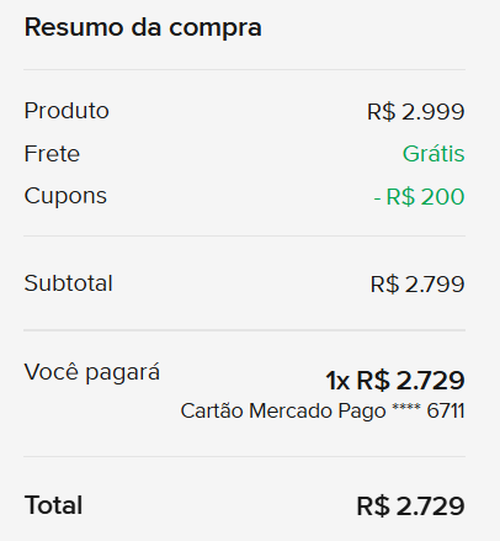 Utilize o cupom R$ 200 OFF Eletrônico BF RJ e consiga + 5% de desconto pagando via cartão Mercado Pago.