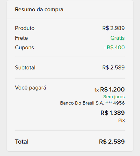Saiu galera - pagando com cartão BB fica por R$ 2.389,00 em 12x sem juros