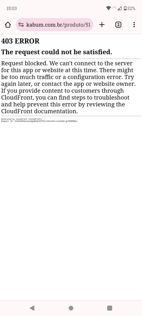 Não sei porque toda vez que tento entrar nas promoções do Kabum por aqui tá esse erro