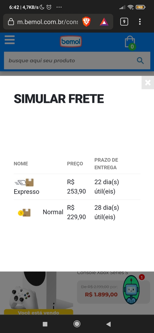 Comprei meu Xbox One S há 2 anos atrás na bemol paguei $999,00 com 1 controle paguei $150,00 de frete levou 15 dias para entregar.