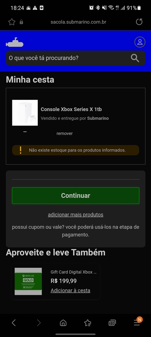 Não consegui finalizar a compra, fala que não tem entrega disponível