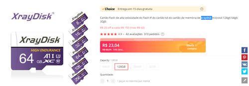 [Conta Nova] Cartão de memória Micro SD Xraydisk 128GB