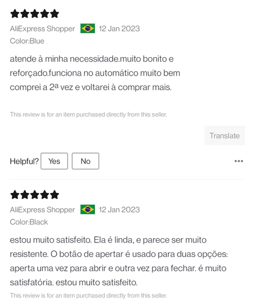 No guarda-chuva reverso qdo fechado, as pontas ficam para cima (fotos do anuncio) e não para baixo junto com o cabo (fotos das avaliações). Ou seja, estão enviando um simples guarda-chuva automático (q abre e fecha) que custa uns R$50-60 em qq vendedor brasileiro nos marketplaces.