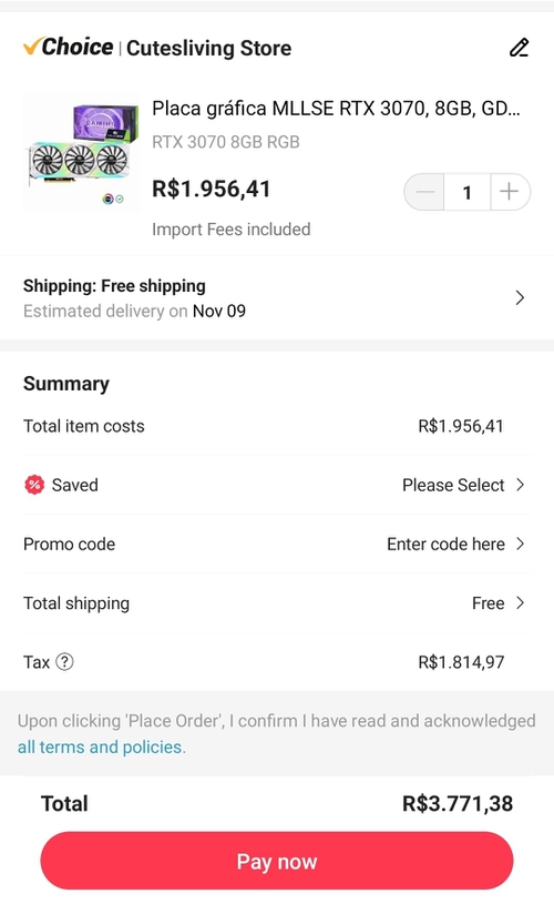 Vou fazer outro post de como comprar já com as taxas inclusas e frete grátis, amanhã provavelmente :)