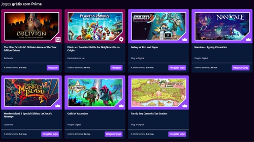 Valeu man, já tinha me esquecido dos jogos da prime, bem lembrado