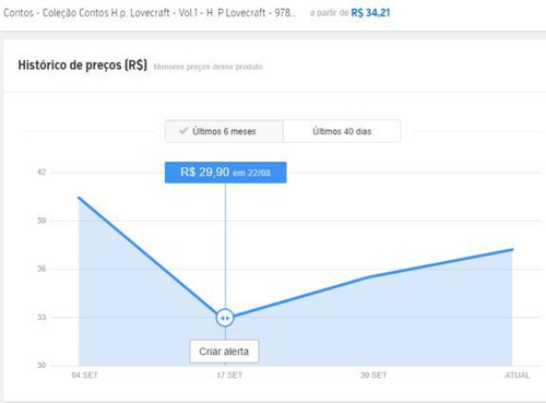 De acordo com o , o menor preço em seis meses para essa publicação foi R$29,90: