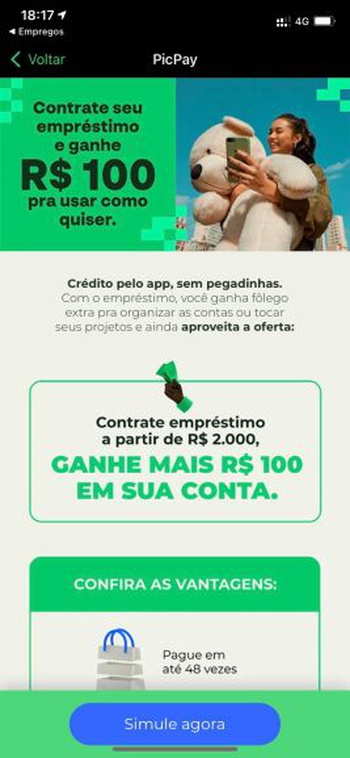 Contrate um Empréstimo de R$ 2000 e ganhe R$ 100 de Cashback