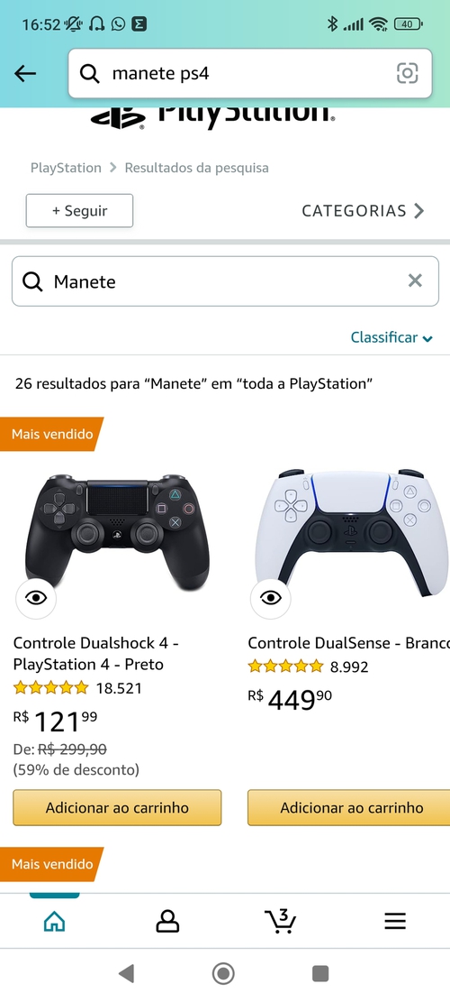 Outra curiosidade achei a loja deles no ML e vi que eles vendem controle do PS4 original e paralelo, no original eles respondem no chat falando que é original e la ta bem caro acima dos 300.... caso queira confirmar o que falei, de uma pesquisada em com nome da loja, depois pesquisa controle ps4 preto ai marca para exibir so deste vendedor, vai ver uma variedade la, como eu disse original e paralelo...