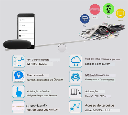 Controle Remoto Infravermelho Universal Compatível com Alexa e Google Home