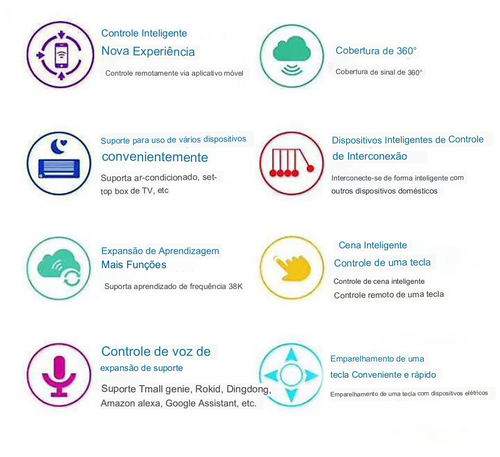 Depois que a configuração está completa, você pode controlar a tv, ar condicionado em casa, se você está trabalhando ou viajando. Dicas: 1. o aplicativo nativo do smart universal ir remoto é chamado de "vida inteligente". 2. e não suporta mihome, ewelink e outro aplicativo. 3. sua função de controle remoto precisa usar wifi o tempo todo